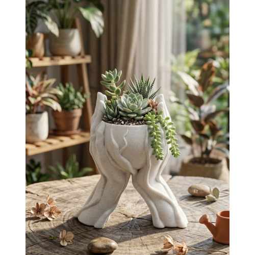 Modern tasarım anlayışı ile üretilen dekoratif el figürlü saksı vazo yaşam alanlarında estetik bir dokunuş sunan dikkat çekici bir dekoratif aksesuardır.